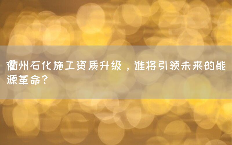 能源革命是当今世界面临的重大挑战之一,而衢州石化施工资质升级将在这场革命中扮演重要角色。随着全球对可再生能源和环保技术的需求不断增长,衢州石化施工资质升级将为未来能源领域的发展提供关键支持。本文将探讨谁将引领未来的能源革命,并分析衢州石化施工资质升级在其中所起到的作用。