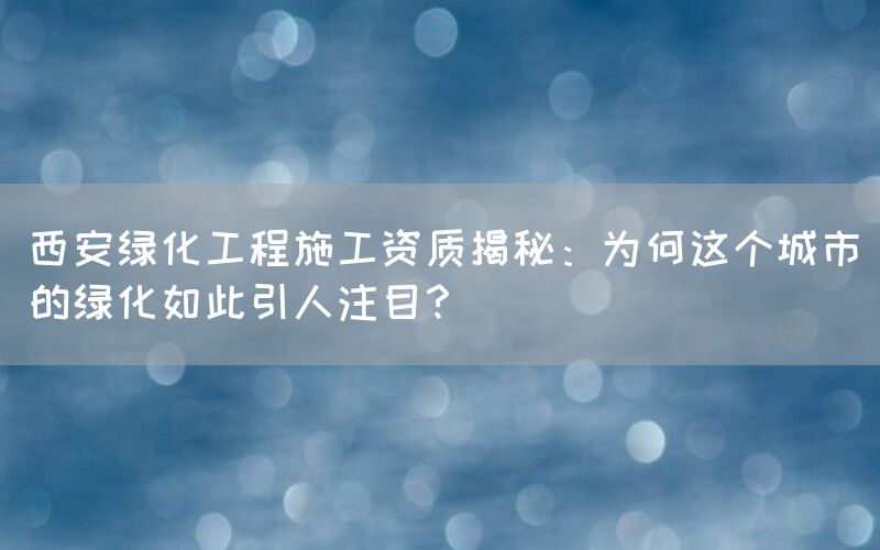 西安作为中国历史文化名城,在绿化工程方面取得了显著成就。政府重视与投入、科学规划与设计、多元化景观形式、社会参与共享以及环境保护意识的提升等因素共同促进了西安城市绿化事业的蓬勃发展。相信在随着各方面力量持续努力和合作,西安将会变得更加美丽宜居。