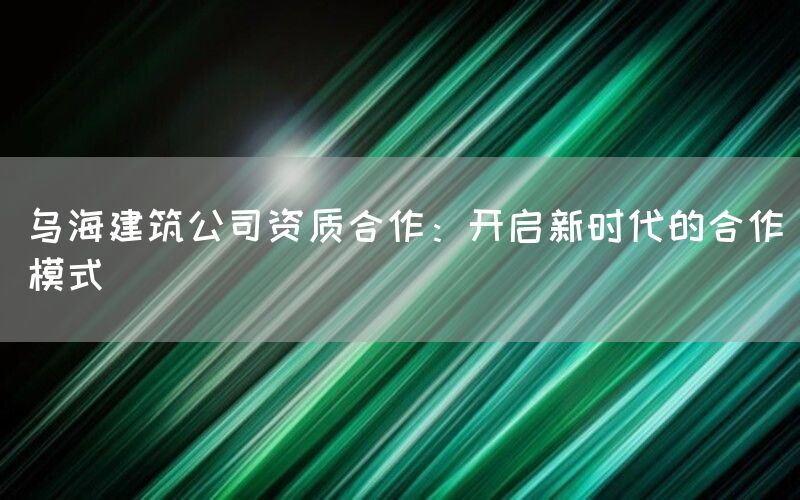 乌海建筑公司在资质合作方面的探索和实践,不仅为公司的长远发展奠定了坚实基础,也为行业的发展注入了新的活力和动力。随着市场环境的变化和技术的进步,乌海建筑公司将继续引领行业发展的潮流,开创更加灿烂的明天。