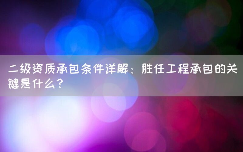 二级资质承包条件的核心在于企业必须具备足够的实力和信誉来完成复杂的建筑工程项目。以下是几个关键因素: