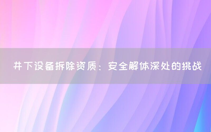 在工业与建筑领域,井下设备的拆除是一项极具挑战性的任务,不仅涉及复杂的技术操作,还需应对严格的安全要求和环境保护标准。本文将深入探讨井下设备拆除资质的重要性,以及如何应对这些深处的挑战。