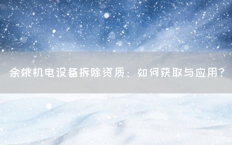 在中国建筑行业的多元化发展中,机电设备拆除资质成为了企业拓展业务和提升竞争力的重要准入条件之一。余姚作为浙江省宁波市下属的县级市,其机电设备拆除市场潜力巨大,但同时也面临着严格的资质要求和竞争激烈的市场环境。本文将探讨余姚机电设备拆除资质的获取路径、应用范围以及合作模式,帮助企业在这一领域中取得成功。