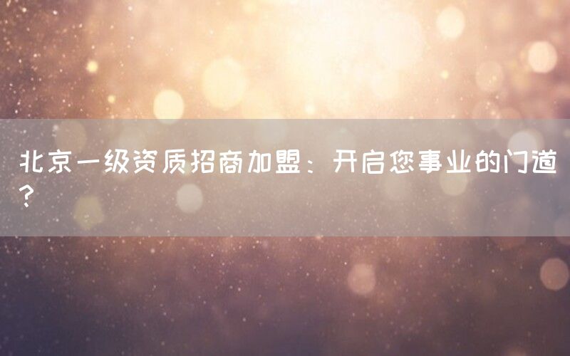 随着中国经济的快速发展,建筑行业作为国民经济的重要组成部分,其发展势头不可限量。作为建筑企业,想要在这个竞争激烈的市场中脱颖而出,获取一级资质是关键的一步。北京作为国家政治经济中心,其建筑行业更是充满了机遇与挑战。本文将探讨通过北京一级资质招商加盟,如何开启您事业的大门。