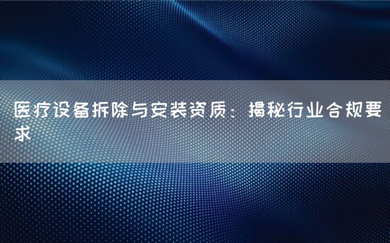 在当今严格监管和高度专业化的医疗设备拆除与安装行业,获取合适的资质至关重要。这些资质不仅是参与市场竞争的凭证,更是确保服务质量和安全性的保障。本文将深入探讨医疗设备拆除与安装资质的申请、合规要求以及行业发展的趋势。