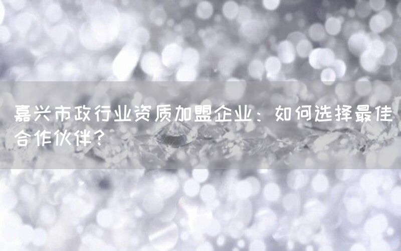 如何选择嘉兴市政行业资质加盟企业的最佳合作伙伴?