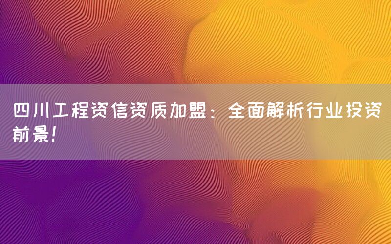 在当今竞争激烈的建筑工程市场中,获取四川工程资信资质成为了企业发展的关键。本文将深入探讨四川工程资信资质的重要性及其加盟投资的前景,为您提供详尽的行业分析和决策支持。