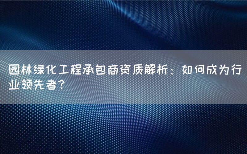园林绿化工程承包商作为城市建设和环境保护的重要力量,其在城市美化、生态改善以及公共空间建设中扮演着关键角色。要想在这个竞争激烈的行业中脱颖而出,并成为行业领先者,需要掌握一系列关键要素。