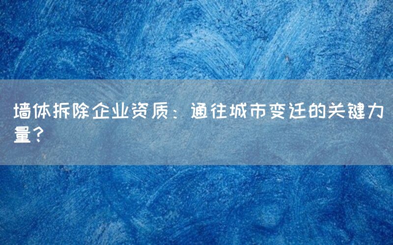 城市的发展变迁,常伴随着建筑的兴衰更替。在这个过程中,墙体拆除企业扮演着重要角色,不仅仅是简单的拆迁工作,更是城市更新和现代化进程中的关键力量。本文将深入探讨墙体拆除企业如何通过获得资质,成为推动城市变迁的关键力量。
