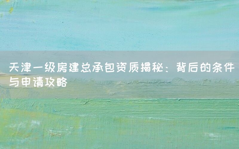 天津作为中国重要的经济中心和城市群节点,其建筑行业发展迅速,对于房建总承包资质的需求日益增加。获得一级房建总承包资质,不仅是企业在市场竞争中的重要竞争力体现,也是其参与大型工程项目的必要条件。本文将深入探讨获得天津一级房建总承包资质的条件、申请攻略以及相关的合作途径。