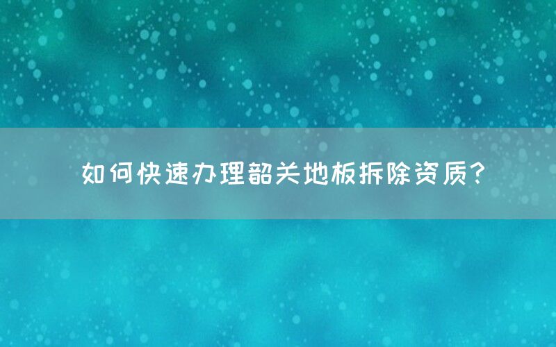 希望本文能为您在办理韶关地板拆除资质过程中提供实用的指导和帮助。