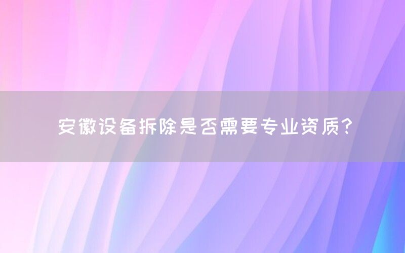 在安徽省,进行设备拆除工作涉及到一系列法律法规和技术标准,因此是否需要专业资质成为业界关注的焦点。设备拆除不仅涉及到施工安全和环境保护,还关乎工程质量和法律责任。本文将从多个角度探讨安徽设备拆除是否需要专业资质的问题。