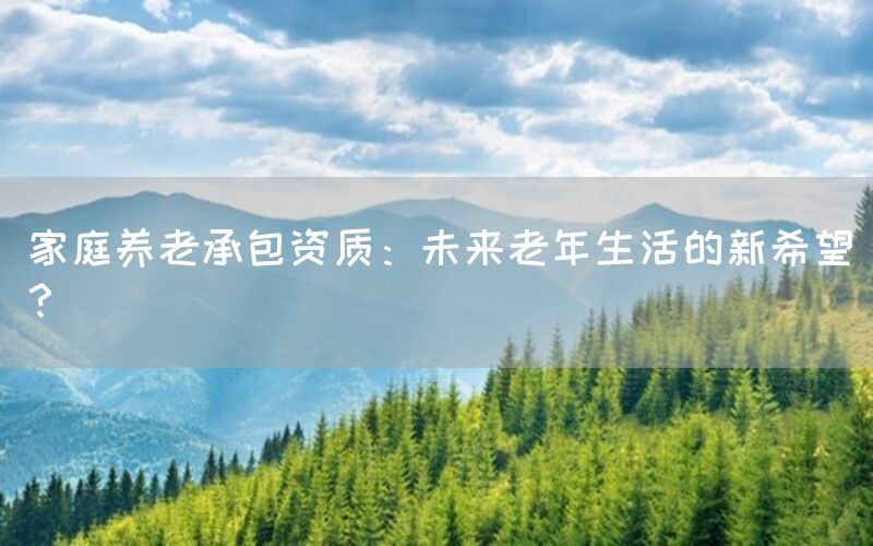 家庭养老承包资质作为未来老年生活的新希望,不仅可以提升老年人的生活质量和家庭的养老效果,还有助于推动养老服务的社会化和专业化发展。随着社会结构和经济环境的变化,这种养老模式有望成为未来养老服务的重要组成部分,为老年人的健康和幸福保驾护航。