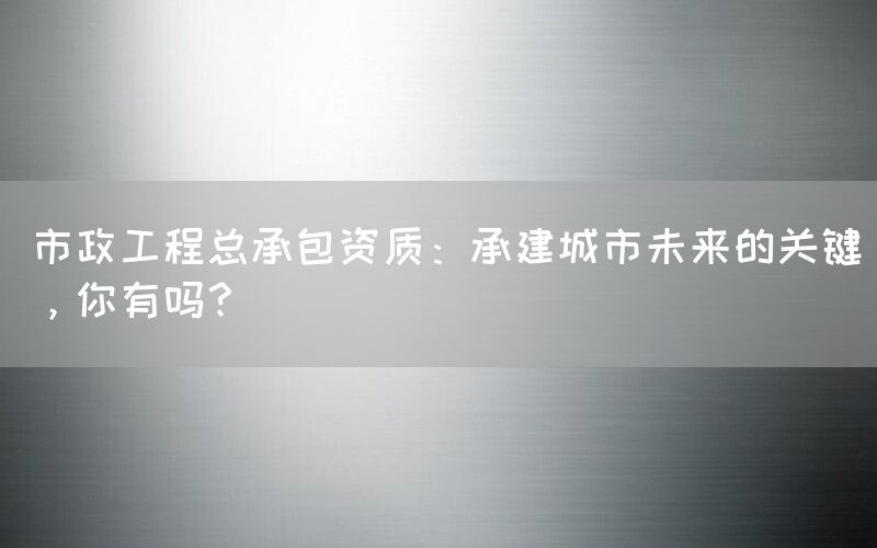 市政工程总承包资质在现代城市建设中扮演着至关重要的角色。这项资质不仅仅是一张许可证,更是城市未来发展的关键支撑。本文将探讨市政工程总承包资质的重要性、获取途径及其在城市发展中的作用。