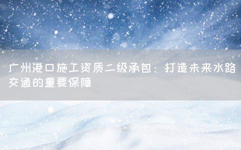 广州港口的发展一直以来都是南方经济的重要支柱之一。作为中国最大的港口之一,广州港不仅仅是货物进出口的枢纽,更是连接世界的重要纽带。在现代化社会背景下,水路交通的发展对于城市经济的推动至关重要。而广州港口施工资质二级承包的授予,则是这一发展的关键。