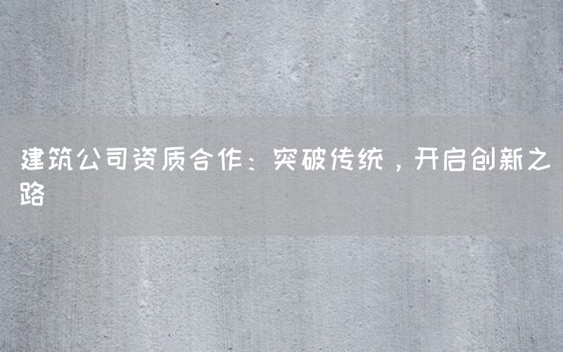 建筑公司在面对市场竞争和技术挑战时,应当敢于突破传统,勇于开拓创新之路,通过积极的资质合作,不断提升自身的综合实力和市场影响力,共同推动建筑行业迈向新的发展高度。