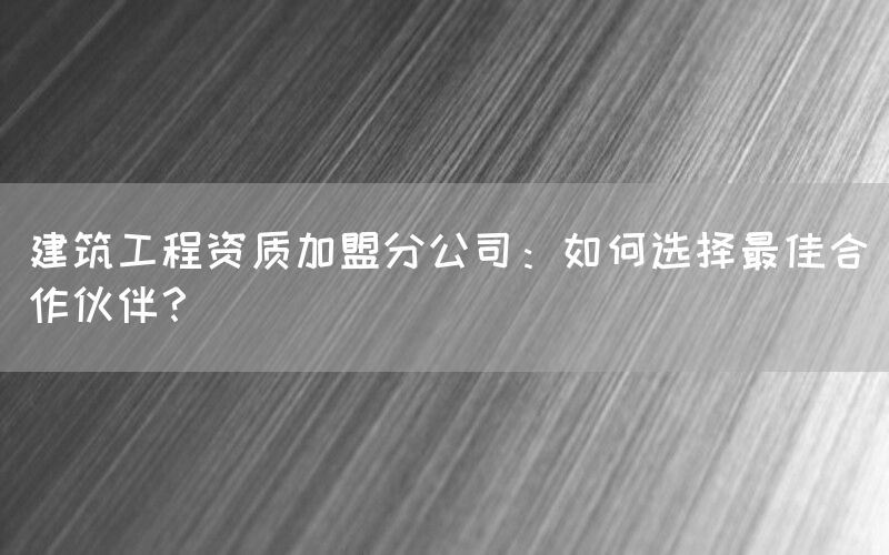 选择最佳合作伙伴:建筑工程资质加盟分公司的关键考量