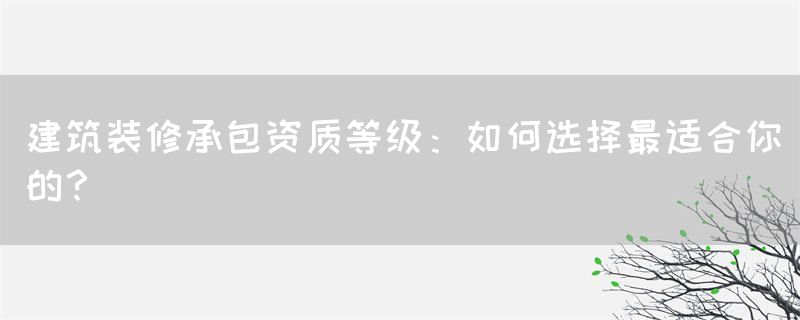 希望本文能为您在建筑装修承包资质等级选择方面提供有益的指导和帮助。