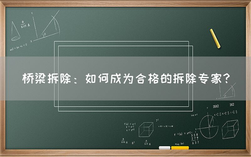 桥梁拆除是建筑工程中极具挑战性和技术含量的一环。要成为一名合格的拆除专家,需要具备广泛的知识和丰富的经验。本文将探讨如何通过系统的学习、实践和专业资质的获取,达到成为桥梁拆除领域专家的目标。