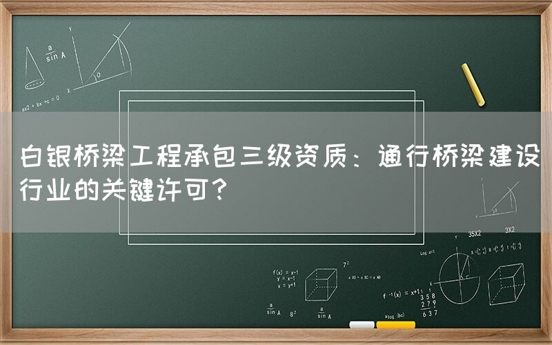 白银市作为甘肃省的重要经济枢纽,桥梁建设在其经济发展中扮演着不可或缺的角色。而要在这一行业中取得突破,获得桥梁工程承包三级资质显得尤为关键。