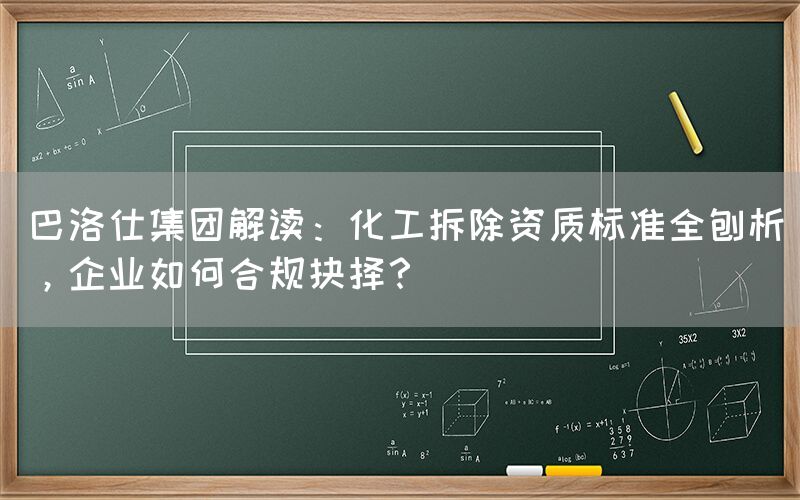 巴洛仕集团解读:化工拆除资质标准全刨析,企业如何合规抉择?