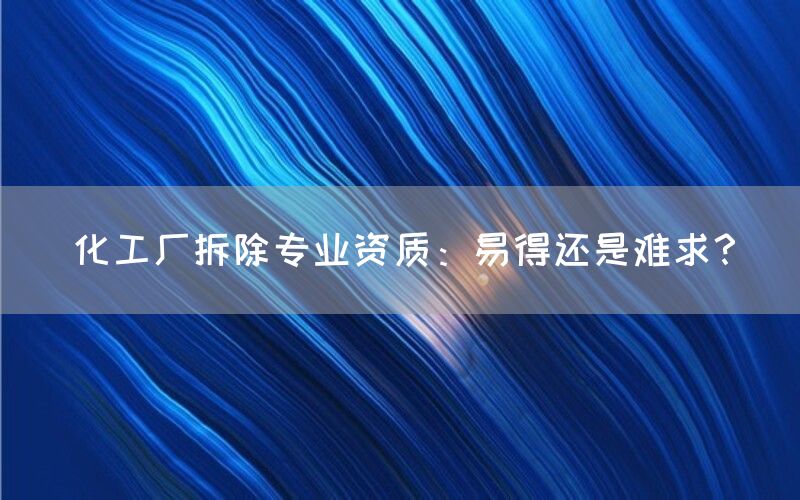 在当前环保意识日益增强的背景下,化工厂拆除成为了一个重要的任务。,要进行化工厂拆除并不是一件简单的事情,需要具备相应的专业资质。对于这样一项专业资质它是易得还是难求呢?将从多个角度进行探讨。