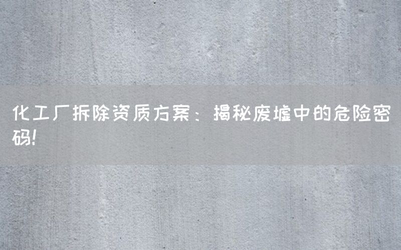 在现代社会中,随着工业化进程的加快,越来越多的化工厂被建立起来。,随之而来的问题是如何安全、高效地拆除这些废弃的化工厂。将为您揭秘废墟中隐藏的危险密码,并提供一套专业、可行的化工厂拆除资质方案。