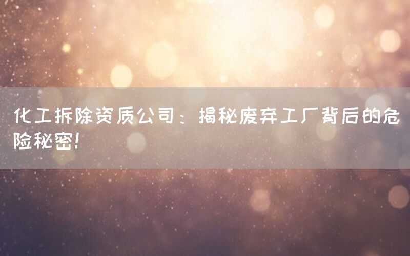 废弃工厂是指因各种原因停产或关闭的工业设施,这些废弃工厂往往隐藏着许多危险和环境污染问题。化工拆除资质公司在解决这些问题上发挥着重要作用。将揭示废弃工厂背后的危险秘密,并介绍化工拆除资质公司在处理这些问题时所扮演的角色。