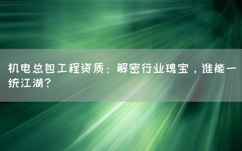 机电总包工程是指在建筑工程中,由一个企业或单位承担整个机电设备安装、调试和运行的全过程。这项领域涉及到多个专业领域的知识和技术,因此对于企业拥有合适的资质是至关重要的。
