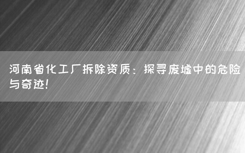河南省作为中国重要的经济大省之一,化工行业在其中扮演着重要角色。,随着时间的推移和环保意识的增强,许多老旧化工厂面临拆除和改造的命运。将探讨河南省化工厂拆除资质相关问题,并揭示废墟中隐藏的危险与奇迹。
