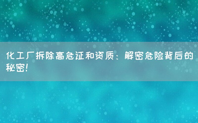 化工厂拆除是一项高风险的任务,需要专业知识和技术来确保安全进行。在这个过程中,拥有合法的高危证和资质是至关重要的。本文将深入探讨化工厂拆除背后的秘密,并介绍巴洛仕集团有限公司提供的一站式解决企业资质问题服务。