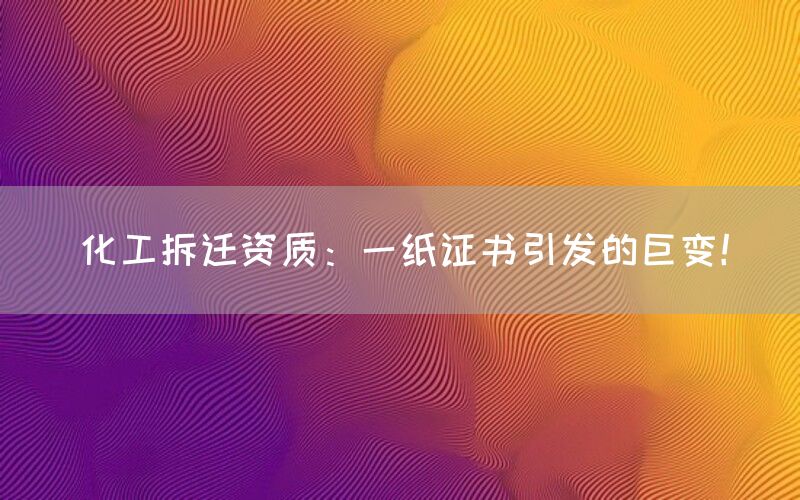 随着城市建设的不断推进,化工企业在某些地区面临着拆迁的问题。而要顺利进行拆迁,企业需要具备相应的化工拆迁资质。这一纸证书看似简单,却引发了巨大的变革和挑战。