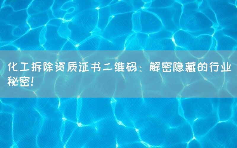 什么是化工拆除资质证书?它又蕴含着哪些行业秘密呢?让我们通过解读二维码背后隐藏的信息来揭开这个神秘面纱。