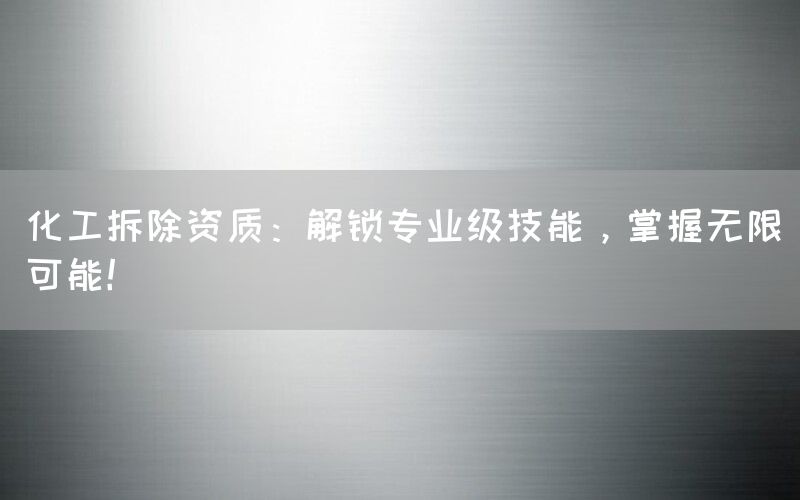 化工拆除是一项涉及高风险的任务,需要经过严格的培训和持有相应的资质才能进行。在这个领域中,拥有合适的资质是非常重要的,它不仅代表着专业水平和技能,还意味着对安全和环境保护具备高度责任感。