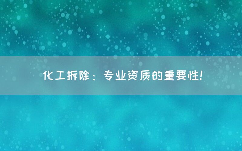 化工拆除行业中专业资质的重要性不可低估。具备相关资质证书的企业能够提供更安全、高效、合规的服务,并有效保护环境和公众健康。在选择化工拆除服务提供商时,我们应该优先考虑那些具备专业资质并且经验丰富的企业。