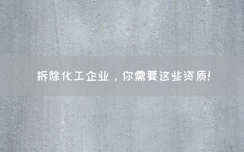拆除化工企业需要具备环境影响评价资质、安全生产许可证、拆迁补偿协议、爆破作业资质、废物处理许可证和施工总承包资质等。持有这些专业的资质可以确保拆除过程中的安全性和合法性,并有效地减少对环境和人员的风险。