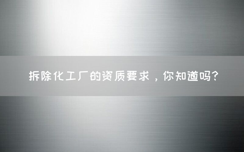 拆除化工厂是一项复杂而危险的任务,需要严格遵守相关法律法规和安全标准。以下是拆除化工厂所需的资质要求: