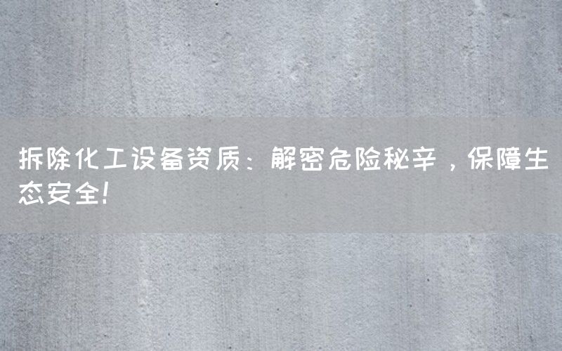 化工设备的拆除是一个复杂而危险的过程,涉及到大量的技术和专业知识。为了保障生态安全和人民群众的健康,拆除化工设备必须遵循一系列严格的规定和标准。本文将深入探讨拆除化工设备资质相关问题,并介绍巴洛仕集团有限公司提供的一站式解决方案。