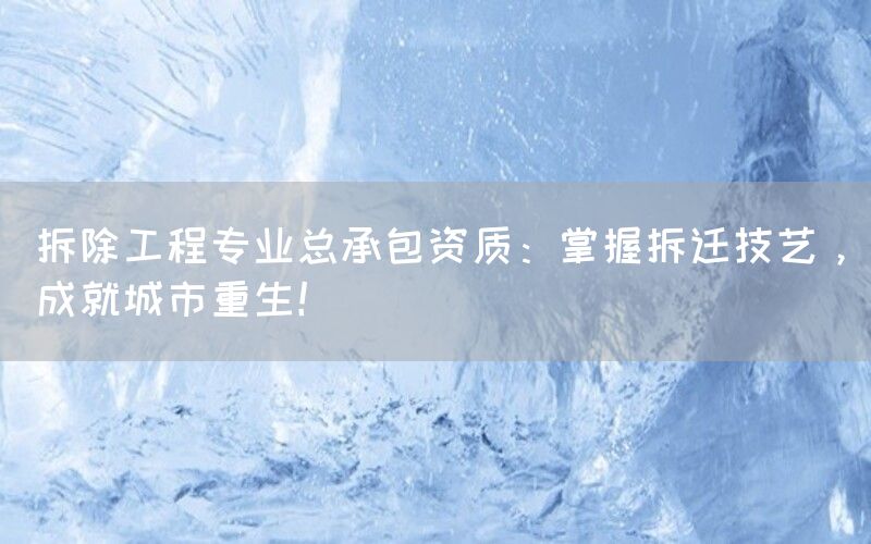 拆除工程是城市建设中不可或缺的一环,它涉及到对旧建筑物、设施的清理和拆除。作为一项专业性较强的工作,需要具备相应的资质和技能。本文将介绍拆除工程专业总承包资质,并探讨其在城市发展中的重要性。