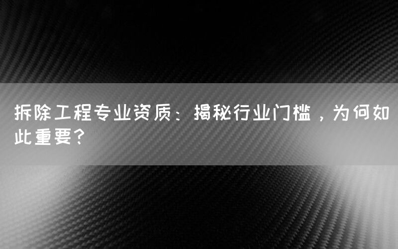 在拆除工程领域获得专业资质是非常重要且必要的。它不仅确保施工符合法律法规和标准,还提高了从事者在设计与执行方面的能力,并增强了其竞争力和信誉度。通过持续学习和不断提升自身的专业知识和技能,拆除工程人员可以为社会提供更安全、高效的服务。