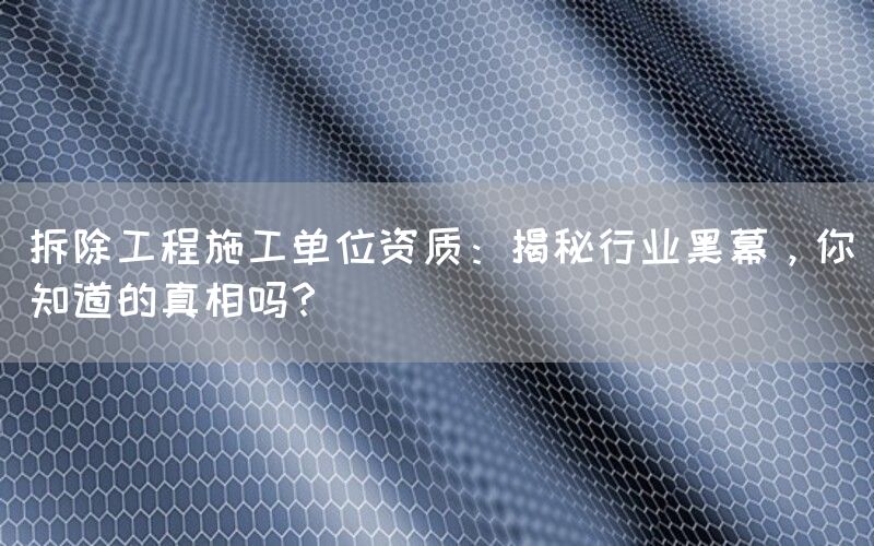 拆除工程是建筑行业中一个重要且常见的环节,涉及到安全、技术和法律等多个方面。为了保证施工质量和安全,国家对拆除工程施工单位进行资质管理,并设立了相应的标准和要求。在这个领域中也存在着一些不为人知的黑幕,本文将深入探讨这些问题。