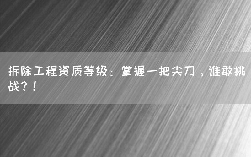 拆除工程是建筑行业中的一项重要任务,需要专业知识和技能来确保安全和高效完成。在进行拆除工程之前,必须获得相应的资质等级才能合法开展相关活动。本文将深入探讨拆除工程资质等级的重要性以及如何获得这些资质。