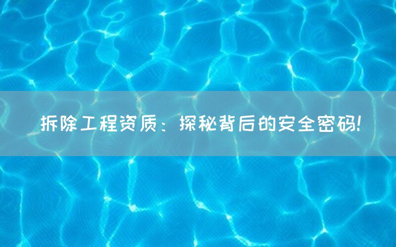 在进行任何形式的拆除之前,必须获得相应的拆除工程资质。这些资质包含了各种方面的专业知识和技能要求,以确保整个过程安全可靠,并符合相关法规和标准。