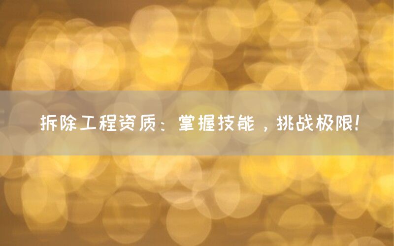 在进入这个领域之前,请务必了解并满足相应要求,获取合适的拆除工程资质,并不断提升自己的技能水平。只有这样,才能在拆除工程行业中掌握技能,挑战极限!