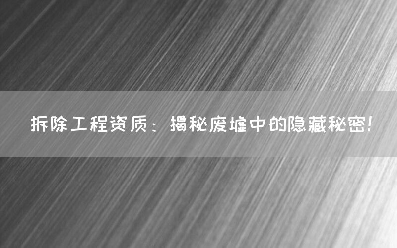 拆除工程是指对建筑物、设施或其他结构进行拆除和清理的过程。在城市更新、土地开发以及灾后重建等项目中,拆除工程起着至关重要的作用。由于涉及到安全风险和环境保护等问题,进行拆除工程需要具备相应的资质。