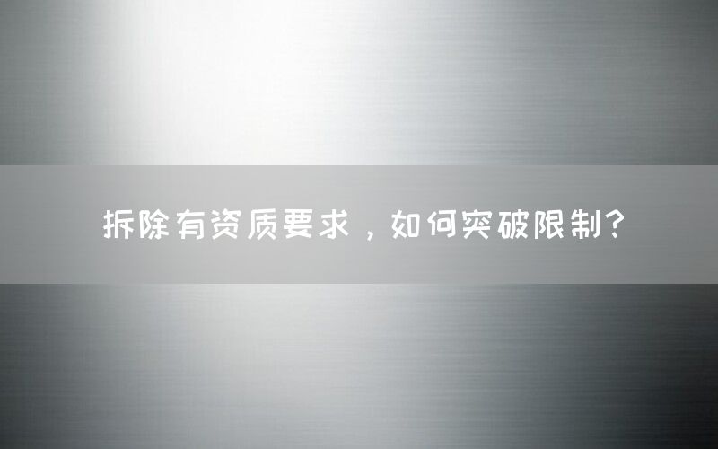 拆除有资质要求的限制是许多企业面临的挑战。在某些行业中,特定的证书或执照是从事相关活动所必需的。这些要求可能会成为进入市场或扩大业务范围时的障碍。本文将探讨如何突破这些限制,并提供一些建议和策略。