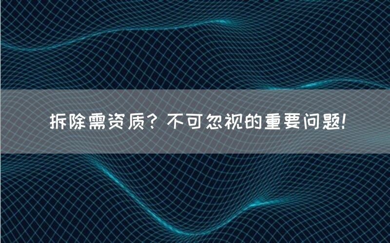 拆除是指将建筑物、设施或其他结构物进行解体、清理和移除的过程。在进行拆除工作时,需要考虑到各种因素,包括安全性、环境保护以及法律法规等。对于进行拆除工作的企业或个人持有相应的资质是不可忽视的重要问题。