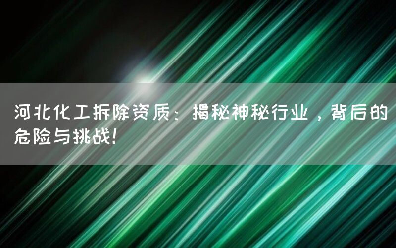 化工行业是一个充满神秘和挑战的领域,其中涉及到许多危险和复杂的过程。而在河北省,拆除化工设施更是需要特定的资质和专业知识。本文将深入探讨河北化工拆除资质,并揭示这个行业背后所隐藏的危险与挑战。