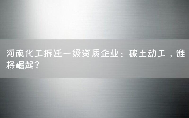 近年来,随着城市建设的不断推进和经济发展的加快,河南省化工行业面临着拆迁潮。在这个过程中,一些具备一级资质的企业将面临新的机遇和挑战。在众多企业中,究竟哪家企业能够在拆迁后崛起呢?本文将围绕这个问题展开深入探讨。