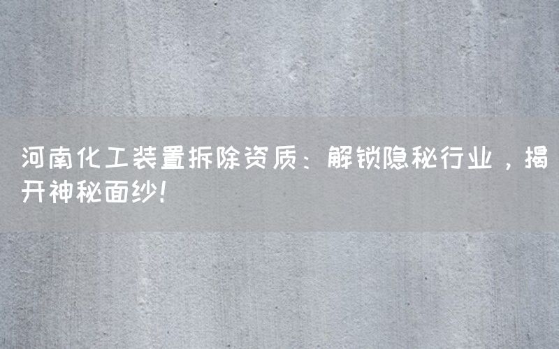 河南地区作为我国重要的化工产区之一,涉及到大量化工装置。这些装置在使用寿命结束后需要进行安全有效地拆除,并处理其中可能存在的危险废物。在河南地区提供化工装置拆除资质的企业显得尤为重要。