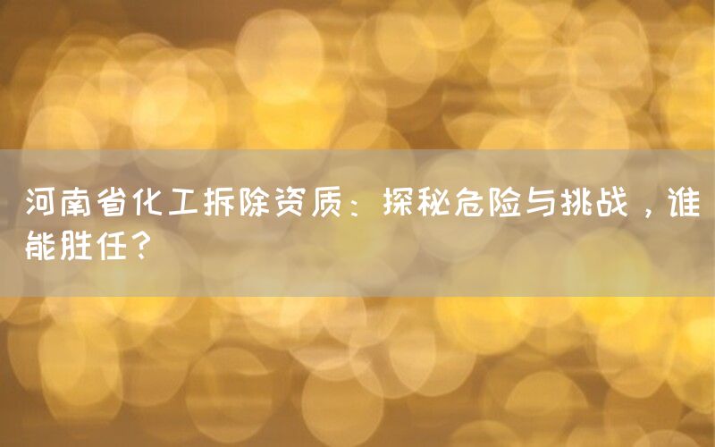 化工拆除是一项危险而具有挑战性的任务,需要专业的知识和技能来确保安全和环境保护。在河南省,拥有合适的资质才能胜任这一重要任务。本文将深入探讨河南省化工拆除资质,并介绍巴洛仕集团有限公司提供的一站式解决方案。